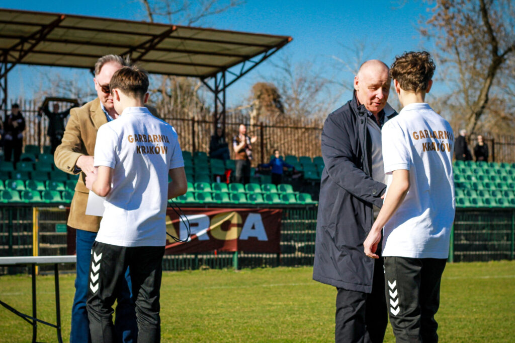 Przed wczorajszym pierwszym gwizdkiem spotkania Garbarnia – Glinik Gorlice, Prezes Jacek Kaim oraz Wiceprezes Marcin Penszkal oficjalnie uhonorowali zawodników oraz trenera naszej drużyny U15.
